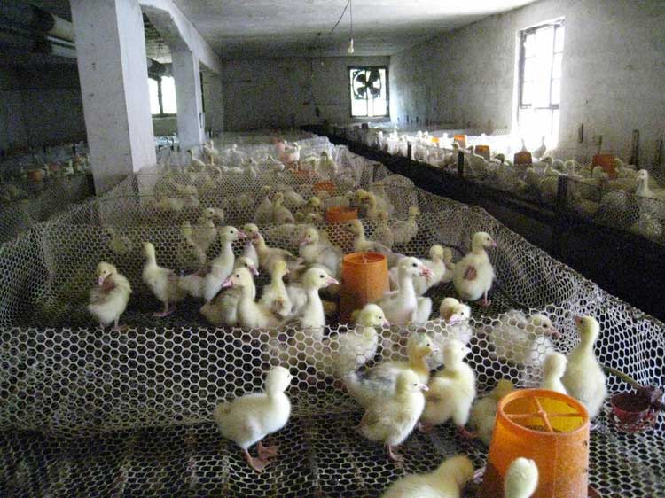 2、育肥舍。舍內設棚架,分單列式和雙列式兩種,分小欄,每欄約10~12平方米,可容納中等體型的中成鵝60~80只。